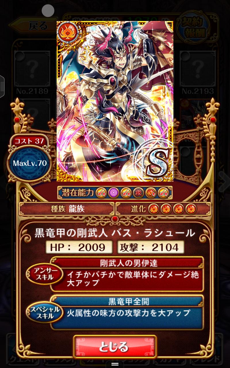 【ウィズ】黒竜甲の剛武人バス・ラシュール ステータス・潜在能力など イチかバチか・・・チャパル!? 2014年06月23日 カテゴリ:話題・グッズ等 707: 名無しさん@お腹いっぱい。:2014/06/23(月) 16:09:26.20 ID:/ZhHOxhx あんまり嬉しくない。