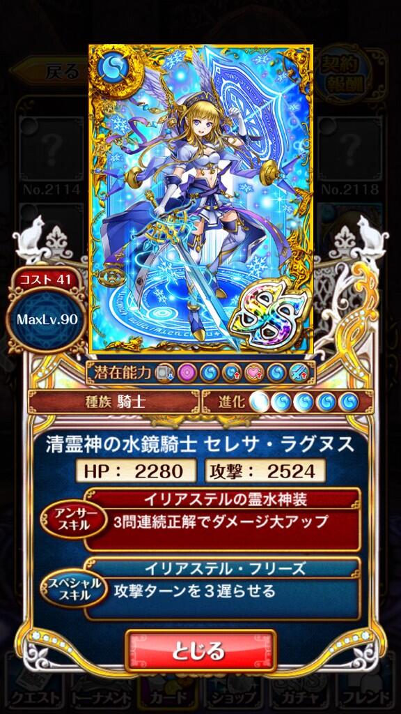 【ウィズ】清霊神の水鏡騎士セレサ・サグヌス ステータス・潜在能力など 水の3T遅延! 2014年06月15日 カテゴリ:話題・グッズ等 @otososan: 屠蘇 2014-06-15 16:18ウィズssパレード新キャラ セレサ pic.twitter.com/hXTn3L2Oey 返信 リツイ お気に