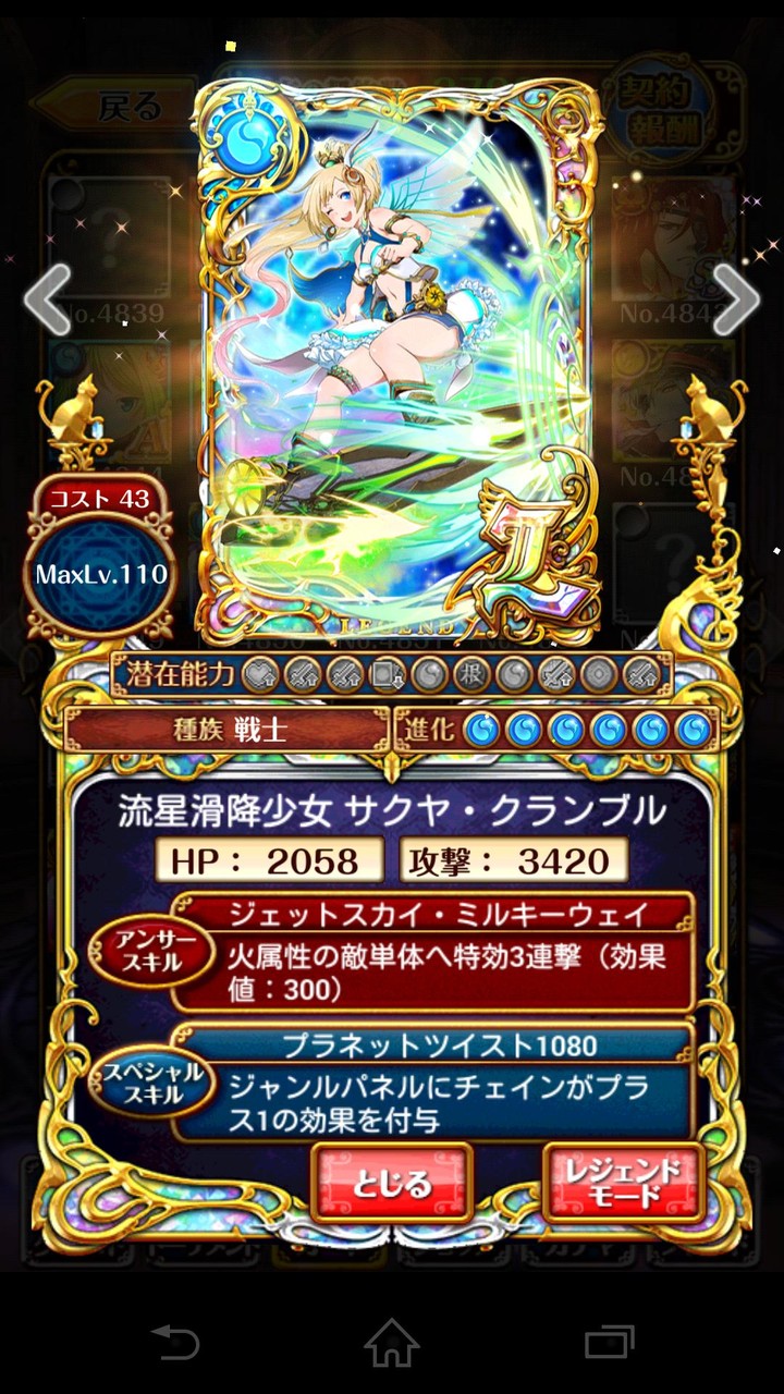 【ウィズ】《既存L進化》流星滑降少女サクヤ・クランブル(L) 最終ステータス・潜在能力 2015年11月02日 カテゴリ:話題・グッズ等 SS必要正解数:3(1)-7(5)215: 名無しさん@お腹いっぱい。 2015/11/02(月) 19:28:18.73 ID:5zixh/Zw.netサクヤ