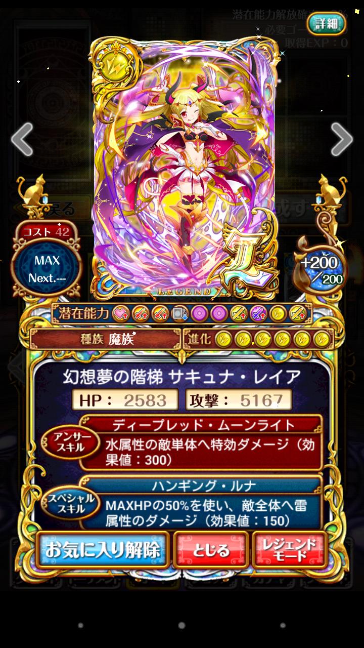 【ウィズ】《既存L進化》幻想夢の階梯サキュナ・レイア(L) 最終ステータス・潜在能力 2015年11月02日 カテゴリ:話題・グッズ等 553: 名無しさん@お腹いっぱい。 2015/11/02(月) 20:08:24.16 ID:EK19ESt6.netサキュ
