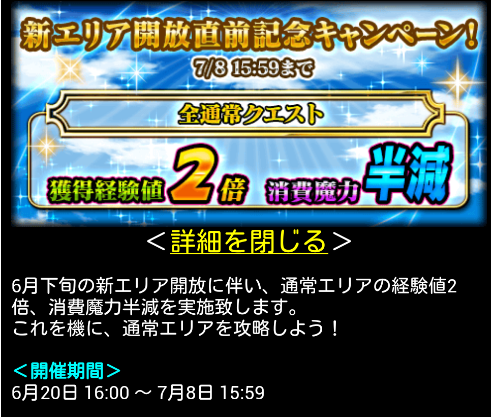 【ウィズ】《6月下旬 新エリア開放予定》魔道杯おつかれさまー!からの~新エリア開放直前キャンペーンきたー! 2016年06月20日 カテゴリ:話題・グッズ等 205: 名無しさん@お腹いっぱい。 (ワッチョイ c699-gXnJ):2016/06/20(月) 16:00:39.20 ID:pKiYMnlf0.net お疲れさまあああ そして半額キャンペーン