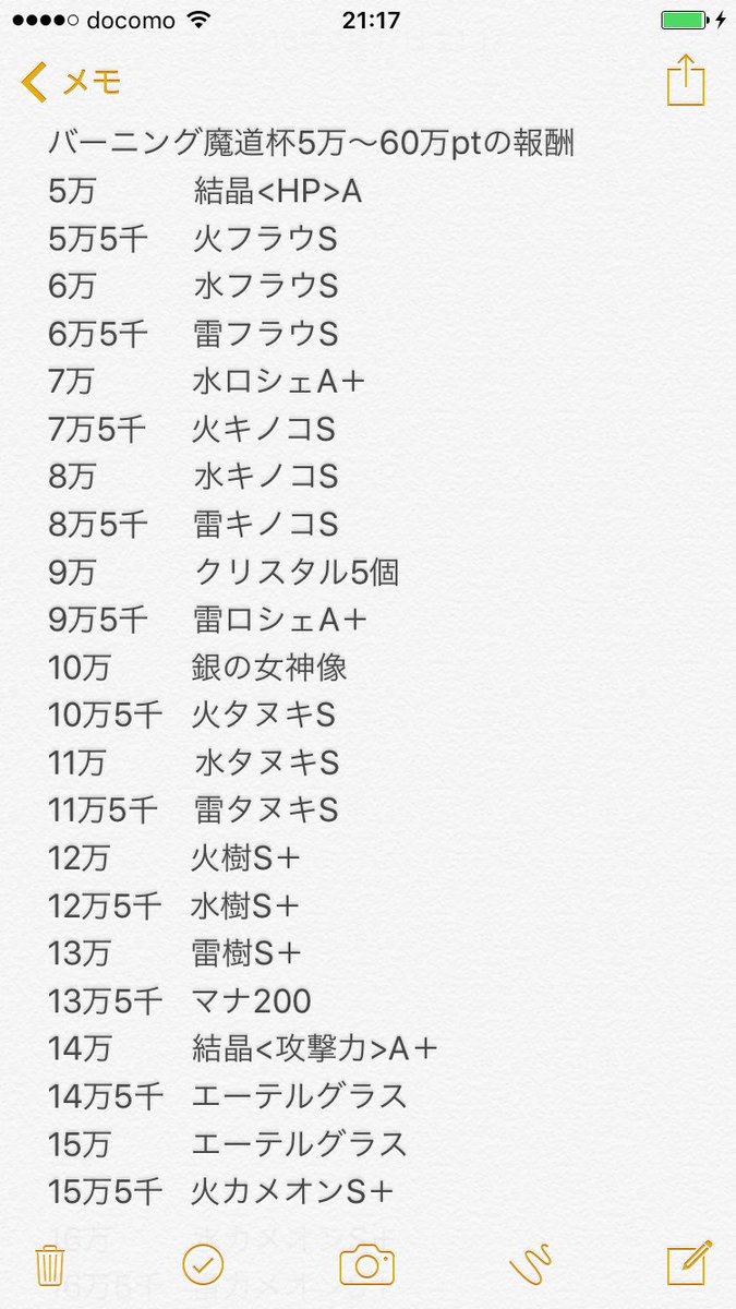 【ウィズ】《大魔道杯バーニング》50万超えてからが本番!5万~60万ptの報酬一覧 2016年06月18日 カテゴリ:話題・グッズ等 653: 名無しさん@お腹いっぱい。 (ワッチョイ c34b-4fuR):2016/06/17(金) 21:59:42.66 ID:CD+L3LMf0.net 既出だったり間違いあったらごめんね
