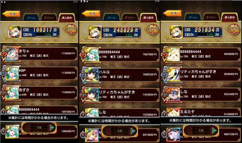 【ウィズ】《大魔道杯in喰牙RIZE》残念ながら参加人数の最低記録更新...ボーダー・参加人数の推移表 2017年05月29日 カテゴリ:話題・グッズ等 456: 名無しさん@お腹いっぱい。 (ニククエ 9f67-9J/J):2017/05/29(月) 16:18:13.76 ID:H1NKtCBM0NIKU.net 魔道杯おつかれさまでした! 今回は日ごとの人数増加も画像にしてみました 初日終了時 日曜日終了時 最終 となります 土曜日はスクショ消えましたが225000付近でした 日曜日がほんと伸びなかった…