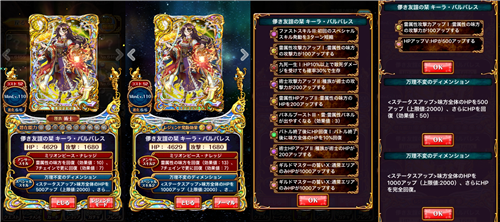 SS1:<ステータスアップ>味方全体のHPを500アップ(上限値:2000)、さらにHPを回復(効果値:50)【必要正解数:5】