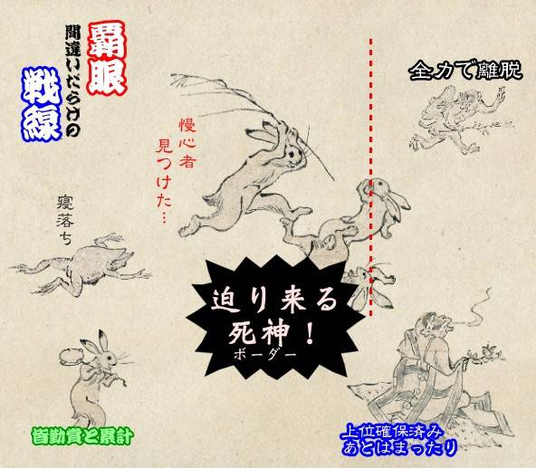64万で現在ボーダー付近。仕事だし伍式しか回れないしでもう無理。おまえらがんばってくれ