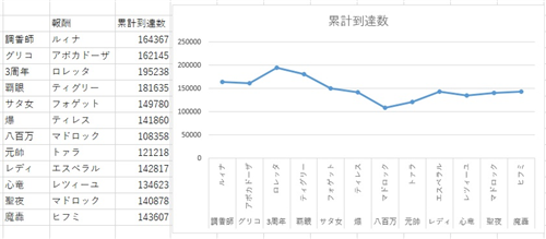 累計集計おつおつ 上層が固定されてきてるな