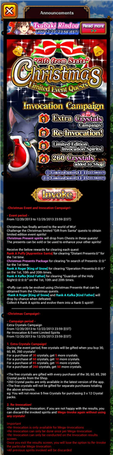 【ウィズ】海外版 3ヶ国版同時10連ガチャ 2013年12月26日 カテゴリ:海外版 598: 海外版ウォッチャー:2013/12/26(木) 07:45:09.59 ID:b9auCwhM クリスマス特別企画:3ヶ国版同時10連ガチャ 時刻:12/25 5:00JST (現地時刻で統一した方が良かったか?)